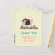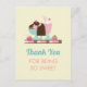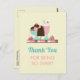 Fête merci carte postale avec votre message personnalisé sur le dos. Conçu sur le thème de la crème glacée douce. Illustré avec un bar à crème glacée au chocolat, un sundae à 3 boulettes avec une cerise sur le dessus, et un flotteur de fraise. Petites fraises et cerises aussi.