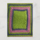 Une photo crochet point simple dans les tons rose, vert, et violet profond.