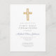 Carte postale personnalisée Dusty Blue Cross Religious Boy First Communion. Partie de la Suite de première communion Dusty Blue Script Cross Boy avec invitation, papeterie et accessoires de première communion.