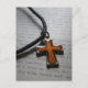 Photographie d'Angelandspot d'un collier fait d'une croix d'orange et d'une chaîne noire placé sur une page vintage de livre depuis les jours où je fabriquais des colliers à partir d'objets trouvés et d'objets vintages et les vendais à un marché agricole local.