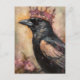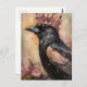 Carte Postale Crow à conte de verdure dans une couronne rose