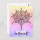 Une belle carte Postale avec un Lotus Mandala en Noir sur une douce couleur pastel arrière - plan en bleu, rose, orange et jaune, et une citation motivante "Croyez en vous" que vous pouvez changer avec votre propre menu personnalisé. Le Mandala de fleur de Lotus est un symbole de la montée au-dessus du monde matériel et d'une union avec l'univers spirituel. Dessiné à la main par SunFreeStar.