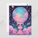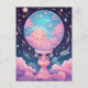 Entrez dans un monde de rêves avec cette carte postale fantaisiste avec une boule de cristal brillante entourée de nuages pastel et d'étoiles. Parfait pour envoyer des voeux magiques à des amis et à des proches.