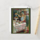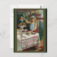 Parfait pour le cuisinier en famille. D'une carte vintage victorienne pour l'extrait de fruits vient une grande image d'une petite fille dans une robe de fête et casquette avec toutes sortes de pâtisseries de fruits, gâteaux, puddings et autres desserts. Parfait pour une invitation au thé !