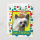 Célébrez un anniversaire avec cette carte de voeux fantaisiste pour chien chassé chinois. Avec un cupcake équilibré sur sa tête, ce design ne manquera pas d'apporter un sourire et des rires ! BTW, Cette conception a plusieurs versions, avec différentes couleurs arrière - plans. Il y a aussi une invitation à une version Party.