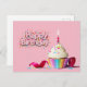 Carte postale cupcake Joyeux Anniversaire rose.
