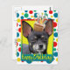 Célébrez un anniversaire avec cette carte de voeux fantaisiste Chihuahua Chig. Avec un cupcake équilibré sur sa tête, ce design ne manquera pas d'apporter un sourire et des rires ! BTW, Cette conception a plusieurs versions, avec différentes couleurs arrière - plans. Il y a aussi une invitation à une version Party.