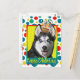 Célébrez un anniversaire avec cette carte de voeux sibérienne charnue pour chien. Avec un cupcake équilibré sur sa tête, ce design ne manquera pas d'apporter un sourire et des rires ! BTW, Cette conception a plusieurs versions, avec différentes couleurs arrière - plans. Il y a aussi une invitation à une version Party.