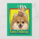 Célébrez un anniversaire avec cette carte de voeux fantaisiste pour chien de Poméranie. Avec un cupcake équilibré sur sa tête, ce design ne manquera pas d'apporter un sourire et des rires ! BTW, Cette conception a plusieurs versions, avec différentes couleurs arrière - plans. Il y a aussi une invitation à une version Party.