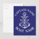 Custom boat captain name navy nautical sailor Classic Postcart. Customizable Postcard for navy sailor captain.