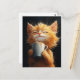 Carte Postale Cute Ginger Kitty avec café