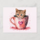 Carte Postale Cute Kitten dans un Teacup avec les coeurs