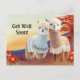 Get Well Bientôt Postcard présentant deux mignonnes lamas dans une scène d'imaginaire. Super d'envoyer des voeux pour un enfant malade.