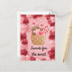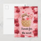 Une adorable carte postale de Saint-Valentin avec un ours en peluche sucré serrant un cupcake délicieux. Il y a des coeurs tout autour de lui, avec un motif romantique de coeurs rouge et rose autour du bord de la carte. Le message romantique "Sweets for the sweet" peut être personnalisé si vous le souhaitez.