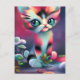 Carte Postale Cute rose AI généré chat