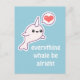 narval rose avec visage souriant. Vous pouvez garder le drôle de jeu de mots "tout va bien baleine" ou le remplacer par votre propre dicton.