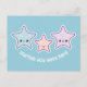 Estarfish de couleur pastel aux visages heureux. Vous pouvez garder le texte "étoile de mer que vous étiez ici" ou le remplacer par votre propre dicton.