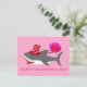 Carte postale avec adorable requin de la Saint-Valentin portant un casquette stylo rouge avec peu de coeur et portant des ballons rouges et roses. Le texte dit "Heureuse Sainte-Valentin". La conception est personnalisable et vous pouvez personnaliser le texte.