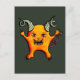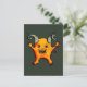 Carte postale démon mignon avec un dessin à l'encre d'un démon bizarre jaune avec des cornes souriant joyeusement et montrant ses dents acérées.