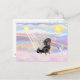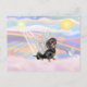 Un Dachshund noir et tan tente ses ailes parmi les nuages moelleux du ciel avant d'entrer librement dans le Pont Arc en Ciel où les anges et les amis attendent.l