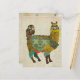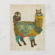 Carte postale d'alpaga et chouette, doré et turquo