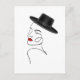 Carte Postale Dame en Casquette noir avec Red Lips Line Art