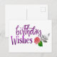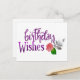 Une simple carte postale d'anniversaire avec juste du texte et une rose avec de la fougère ,