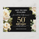 Roses blanches aquarelle fête d'anniversaire 50 ans. Design floral élégant pour une célébration d'anniversaire de n'importe quelle année. Facile à personnaliser avec un modèle. Magnifique modèle de conception de carte d'anniversaire pour enregistrer la date.