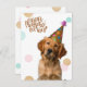 Carte postale d'anniversaire avec un chiot en chap