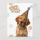 Célébrez la journée spéciale de quelqu'un avec cette charmante carte postale présentant un adorable chiot golden retriever portant un chapeau de fête festif. Le design ludique est accompagné d'un message audacieux "Joyeux Anniversaire à toi !" dans une police moderne et élégante. Parfait pour envoyer des vœux d'anniversaire chaleureux aux amoureux des chiens et aux amis. Cette carte postale est sûre de faire sourire et d'illuminer leur anniversaire ! Idéal pour un usage personnel ou comme un cadeau unique.
