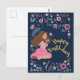Carte postale d'anniversaire bleue avec une dame e