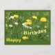 Ces pissenlits et marguerites poussent dans le champ herbeux de notre parc voisin. Il y a un papillon sur le pissenlit au milieu.