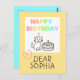 Le texte arc-en-ciel coloré et les tons jaune chaud et bleu ciel sont harmonisés.