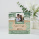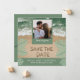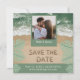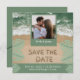Vibes de plage modernes vert sauge et sarcelle avec photo, date de sauvegarde en lettres de sable et photo personnalisée. REMARQUE : le texte, la police, les couleurs et les éléments sont entièrement personnalisables à l'aide de l'outil de conception.