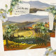 Une carte postale originale d'annonce de mariage présentant une peinture d'art raffiné d'un paysage italien aux couleurs festives.