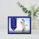 Annoncez vos fiançailles, mariage ou anniversaire de mariage avec une carte postale "Sauver la date" avec une bordure bleu royal et un texte blanc, des éléments de flourish blanc.