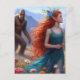 Une femme et Sasquatch dans une prairie de montagne, art généré par intelligence artificielle fantastique