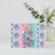 Carte postale à rayures pastel bleu Budgie Shabby Chic. Ce design charmant compléterait n'importe quel décor. Conçu à partir de l'une de mes peintures originales.