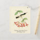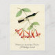 Carte postale avec une illustration vintage d'histoire naturelle par Antoine-Germain Bevalet, v.) Un colibri vert et blanc avec une tête bleu-violet perché sur une vigne de trompette rose corail, avec un fond de texture de parchemin jaune doré clair. Nettoye et améliore numeriquement tout en conservant ses caractéristiques vintage. Comprend les noms communs et scientifiques dans des polices décoratives. Timbres-poste américains assortis disponibles.