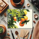 Une carte postale avec la peinture d'art fin de Winslow Homer (1836-1910) - Oranges sur une branche (1885). Une nature morte vibrante représentant des fruits sur des branches pleines de feuilles. Les oranges, dans leurs teintes chaudes, se détachent sur le fond de feuilles vert foncé. L'utilisation méticuleuse de la couleur par Homer crée une composition visuellement époustouflante et harmonieuse.