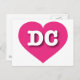 Cette carte postale est dotée d'un coeur rose chaud et vibrant, contenant les lettres coques en haut, blanches et audacieuses DC, l'abréviation officielle du District de Columbia. Le verso de la carte postale est vide, en attendant vos sentiments manuscrits ou le texte customisé.