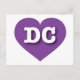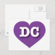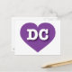 Cette carte postale est dotée d'un coeur violet plein de vitalité et contient les lettres coques supérieures blanches en gras DC, l'abréviation officielle du district de Columbia. Le verso de la carte postale est vide, en attendant votre texte customisé ou vos sentiments manuscrits.