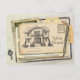 Jolie petite carte vintage avec un aspect de papier empilé avec beaucoup d'objets éphémères anciens et un stylo argenté et une clé pour informer les autres que vous avez déménagé