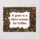 Les mots "A yawn est un cri silencieux pour Café" encadré de grains de café