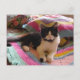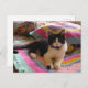 Carte postale de chat smoking mignon avec un joli tapis au crochet. Une photographie originale prise par moi.