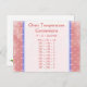 Cette carte postale est jolie et utile. Si présente des rayures rouges et bleues sur les côtés. Des à petits pois blancs couvrent la carte entière. Au centre se trouve un tableau de conversion de température du four de Fahrenheit à Centigrade à Gas Mark et au dos. Vous pouvez l'utiliser pour envoyer un courrier à un ami qui fait des gâteaux ou qui utilise comme carte de recettes.