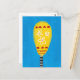 Corndog jaune coloré sur fond bleu peint avec des détails de fleurs et de rayures.