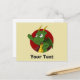 Carte postale personnalisée avec illustration de la tête d'un petit dragon volant vert mignon, dans un cercle rouge, conception de fantaisie / conte de fées pour enfants par Maxi Harmony