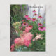 Fleurs roses à œil noir et bruyère rose poussant le long d'une clôture dans un jardin.
