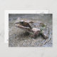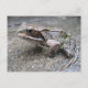 Carte postale de grenouille. Ce petit amphibien (Rana temporaria) est magnifiquement camouflé sur le pas de pierre. il est en regard de verre en regardant dehors. Vous pouvez customiser ceci en ajoutant du texte. (ribbit, croak ou prince viennent à l'esprit)